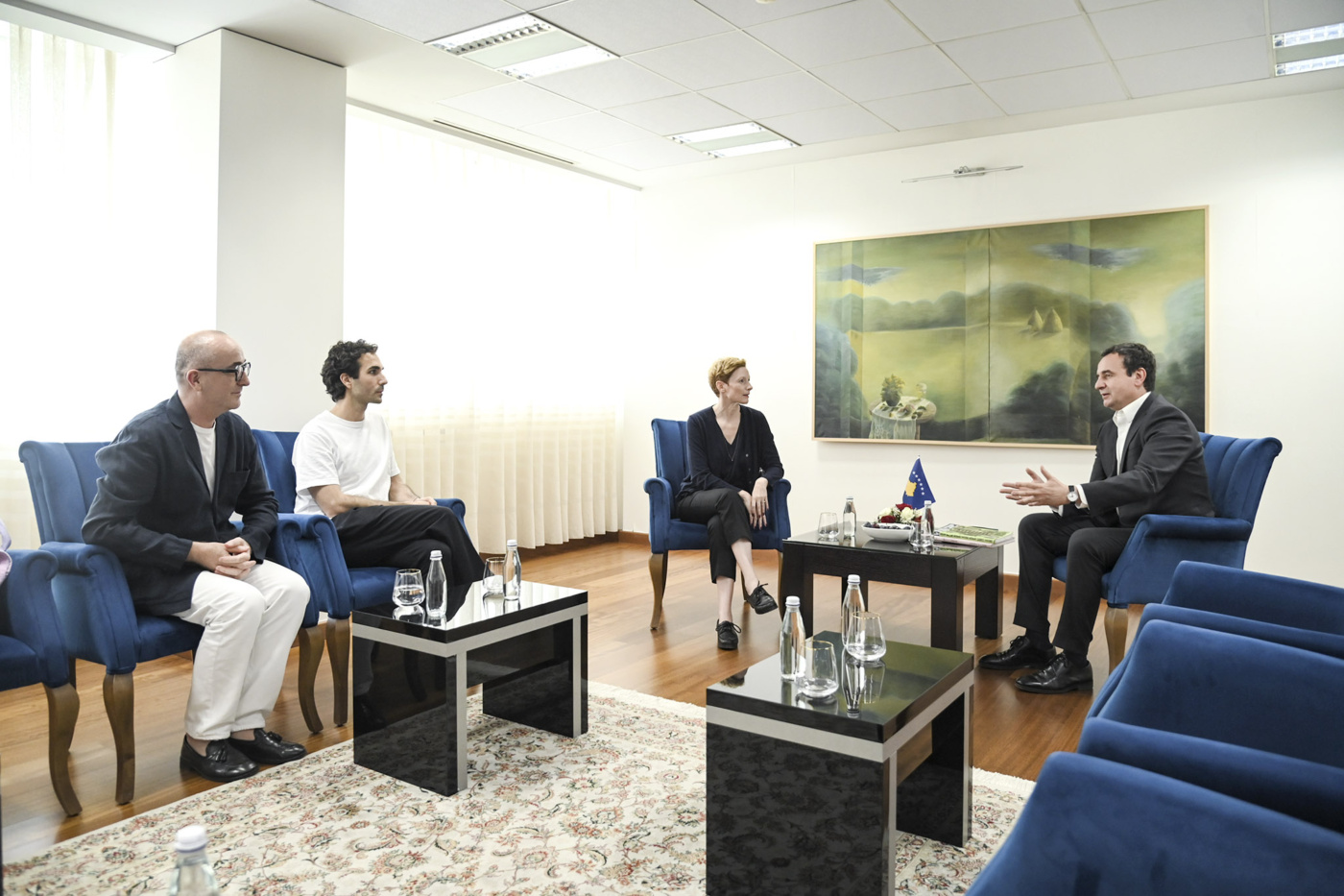 Kryeministri i Republikës së Kosovës, Albin Kurti mirëpriti sot Drejtoren Artistike të Fondacionit Kulturor Federal të Gjermanisë, Katarzyna Wielga-Skolimowska dhe krijuesin e programeve të zhvillimit në këtë fondacion, Nuno de Brito Rocha, të shoqëruar nga artisti vizual dhe kuratori shqiptar, Erzen Shkololli.