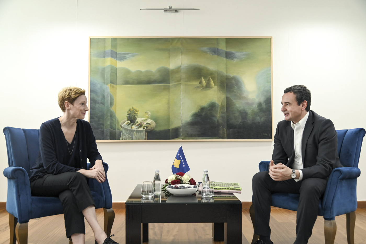 Kryeministri i Republikës së Kosovës, Albin Kurti mirëpriti sot Drejtoren Artistike të Fondacionit Kulturor Federal të Gjermanisë, Katarzyna Wielga-Skolimowska dhe krijuesin e programeve të zhvillimit në këtë fondacion, Nuno de Brito Rocha, të shoqëruar nga artisti vizual dhe kuratori shqiptar, Erzen Shkololli.
