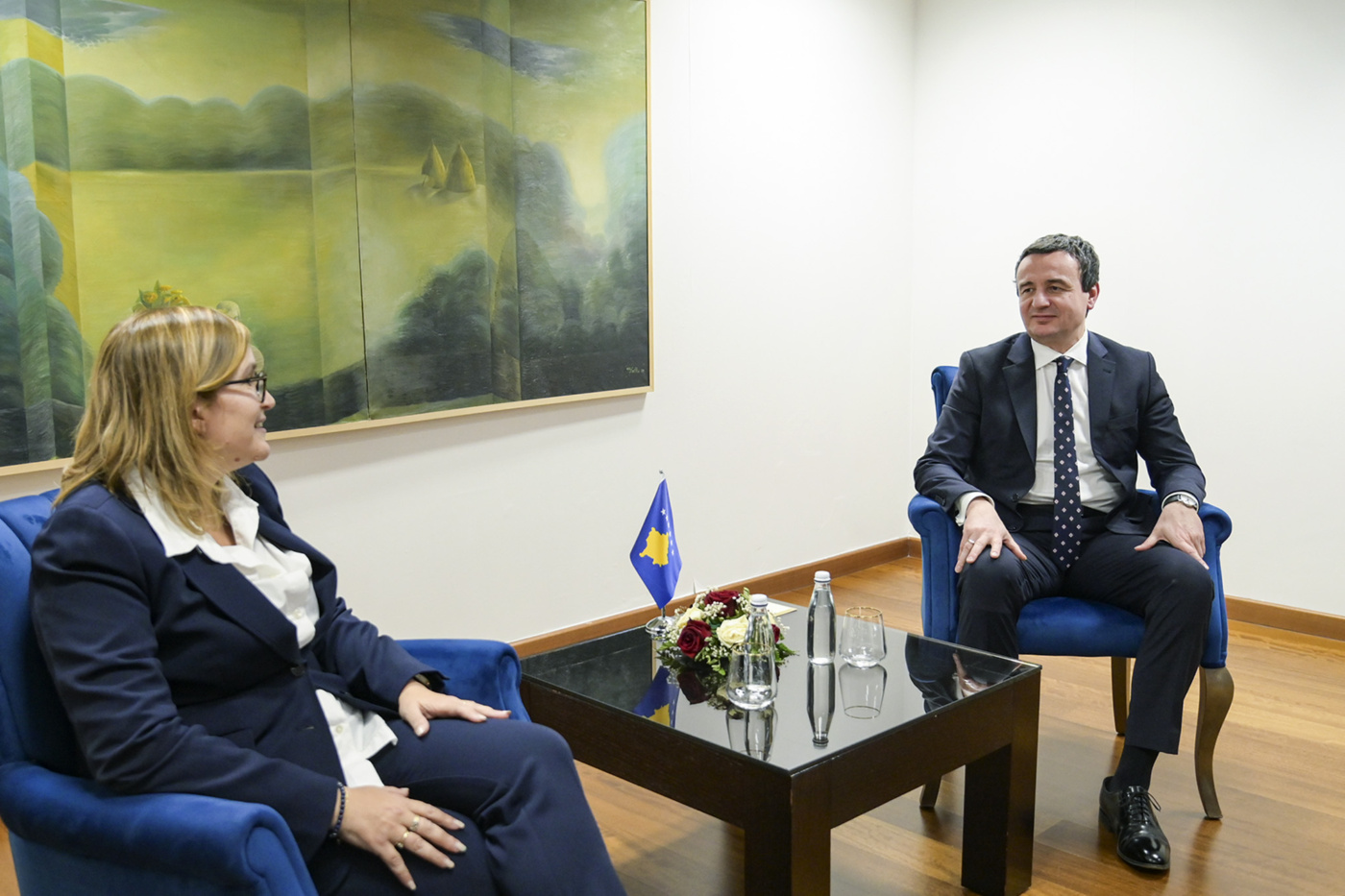 Kryeministri i Kosovës, Albin Kurti, mirëpriti në takim Drejtoren Rezidente të Programit për Kosovë nga Instituti Republikan Ndërkombëtar (IRI), Marta Onorato.