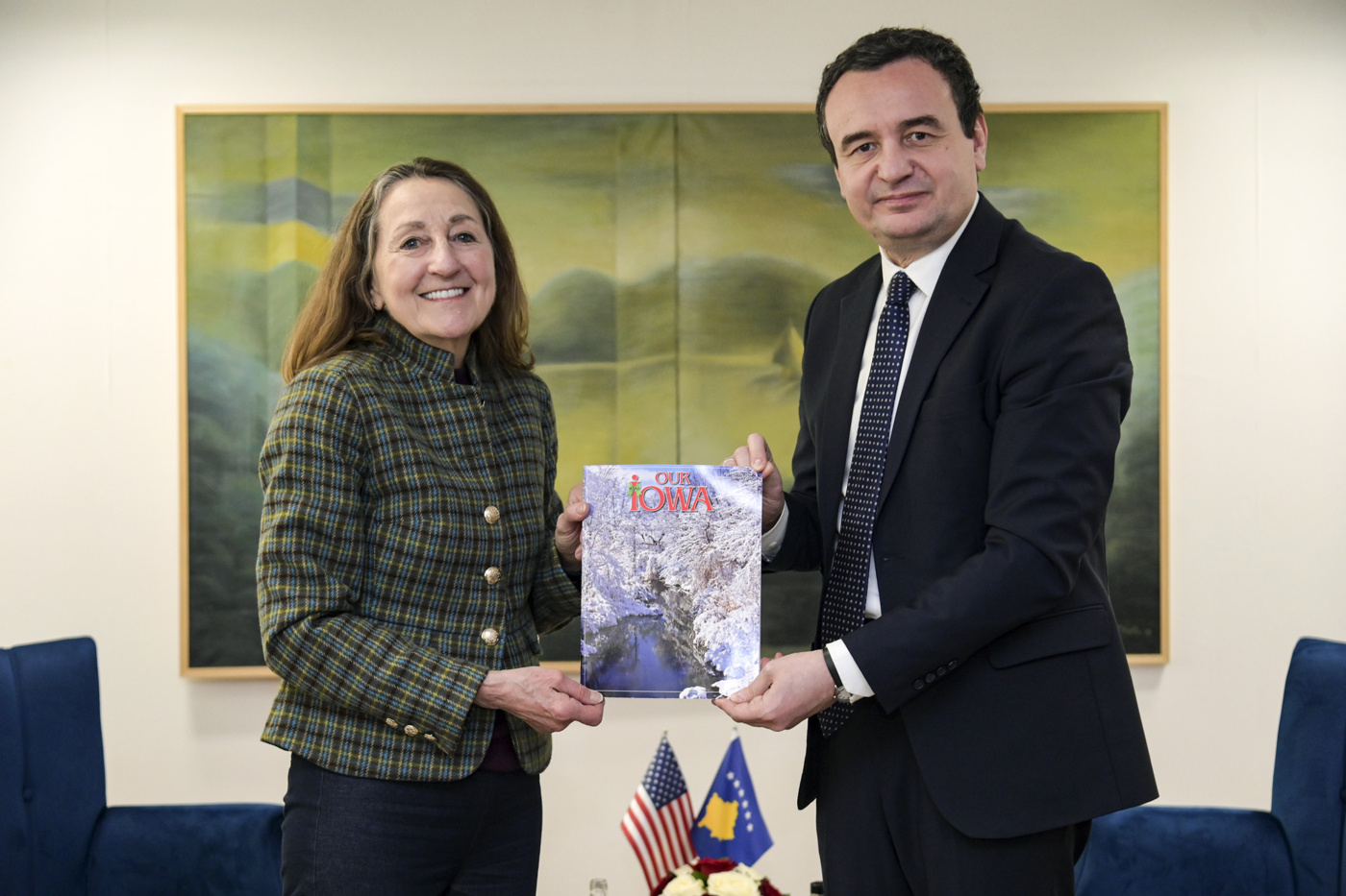 Kryeministri i Republikës së Kosovës, Albin Kurti, mirëpriti në takim kryetaren e qytetit të Johnston në Iowa të Shteteve të Bashkuara të Amerikës, Paula Dierenfeld.