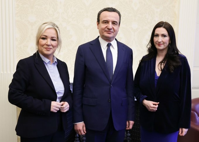 First Minister Michelle O’Neill and deputy First Minister Emma Little-Pengelly today welcomed the Prime Minister of Kosovo, Albin Kurti, to Stormont Castle. Discussions covered a range of issues, including peace and reconciliation. pic.twitter.com/uKBUdUVzG1