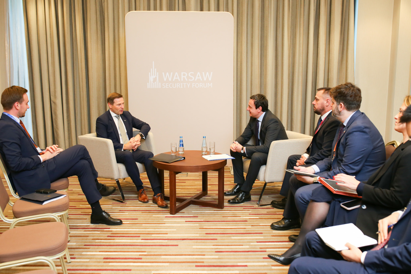 Kryeministri i Kosovës, Albin Kurti në Forumin e Varshavës është takuar me ministrin e Mbrojtjes së Estonisë, Hanno Pevkur.