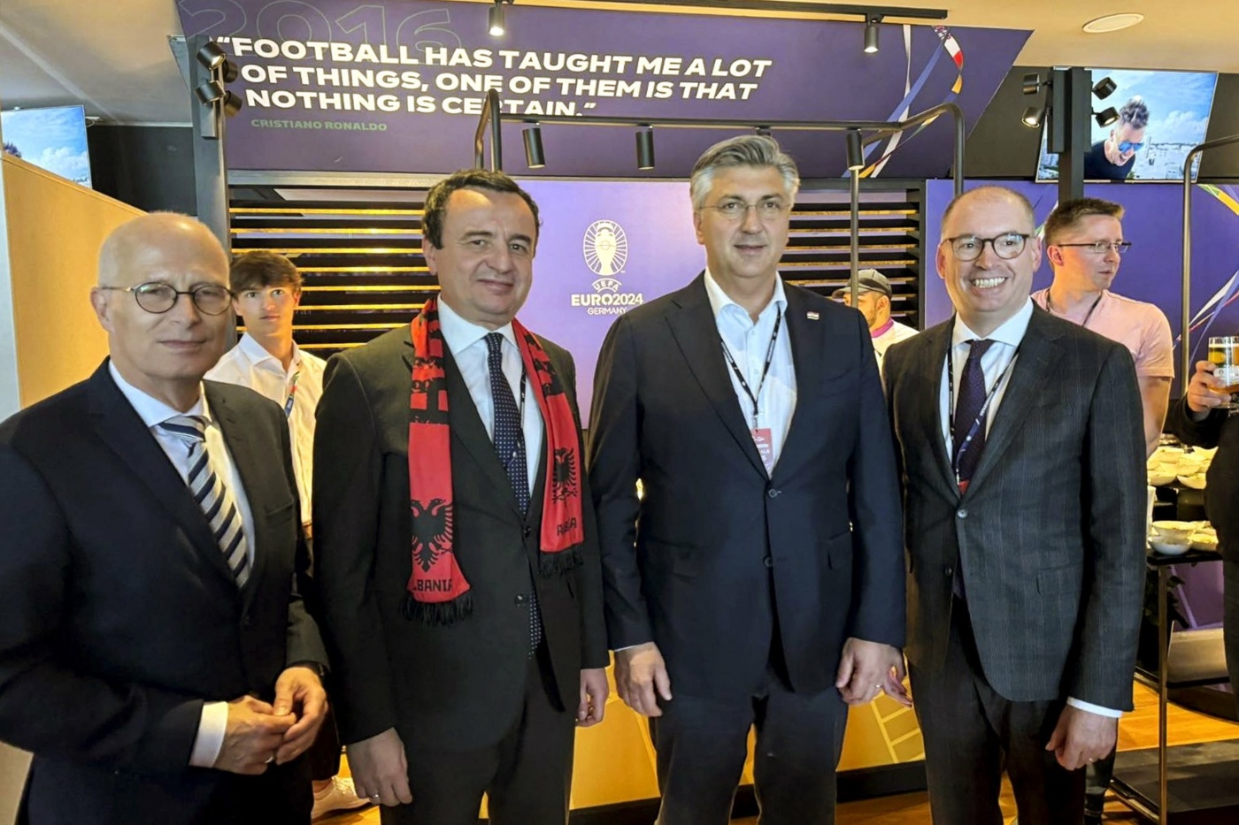 In the historic city of Hamburg, during the half time break of today’s football match, which ended in a friendly result, I had an even friendlier encounter with Prime Minister @AndrejPlenkovic, Bundestag member @NielsAnnen, and Mayor @TschenPe. ?????? — sports and international… pic.twitter.com/AFQucSL9nD