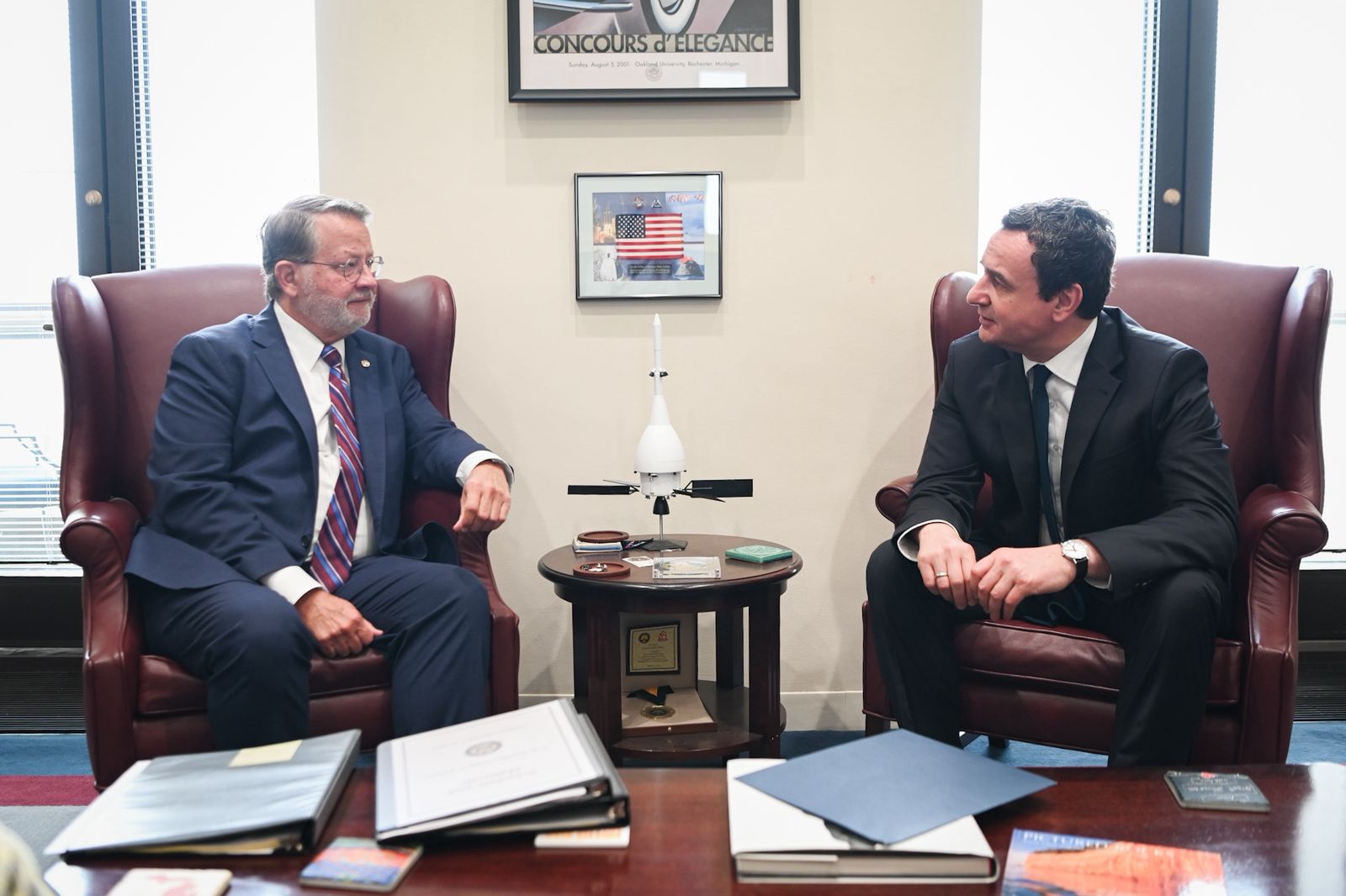 Diskutuan për sfidat rajonale dhe për partneritetin e ngushtë Kosovë-ShBA. Kryeministri Kurti e njoftoi senatorin Peters për zhvillimin dhe zhvillimet në vend në rrafshin ekonomik, demokratik dhe të sigurisë. E falënderoi për mbështetjen e tij të vazhdueshme ndaj Kosovës dhe për përfaqësimin e komunitetit shqiptar në Michigan.
