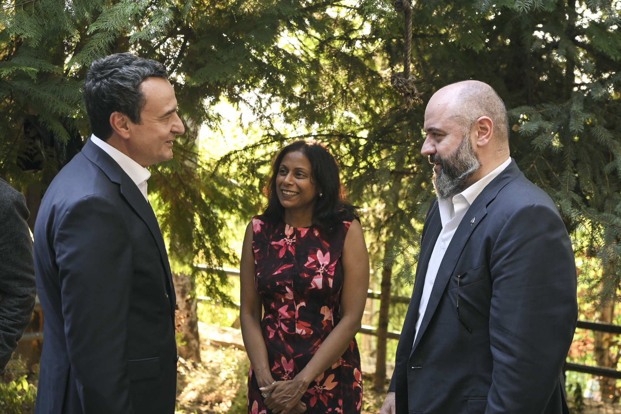 Kryeministri në detyrë i Republikës së Kosovës, Albin Kurti takoi sonte zëvendësndihmëssekretarin amerikan të Mbrojtjes për Politika Evropiane dhe NATO, David Baker, të shoqëruar nga e Ngarkuara me punë në Ambasadën e Shteteve të Bashkuara të Amerikës në Kosovë, Anu Prattipati, në një darkë pune të shtruar nga ministri në detyrë i Mbrojtjes, Ejup Maqedonci.
