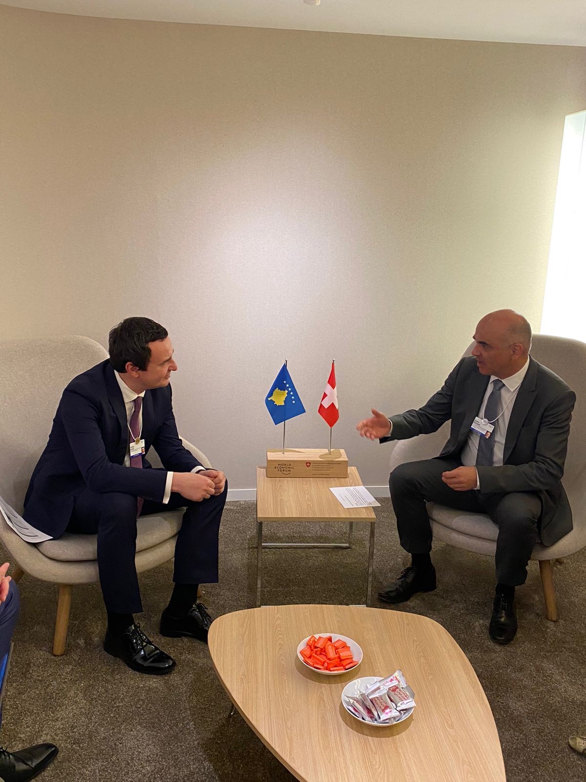 Kryeministri i Republikës së Kosovës, Albin Kurti, takoi zëvendëspresidentin e Zvicrës, Alain Berset, gjatë Forumit Ekonomik Botëror që po zhvillohet në Davos.