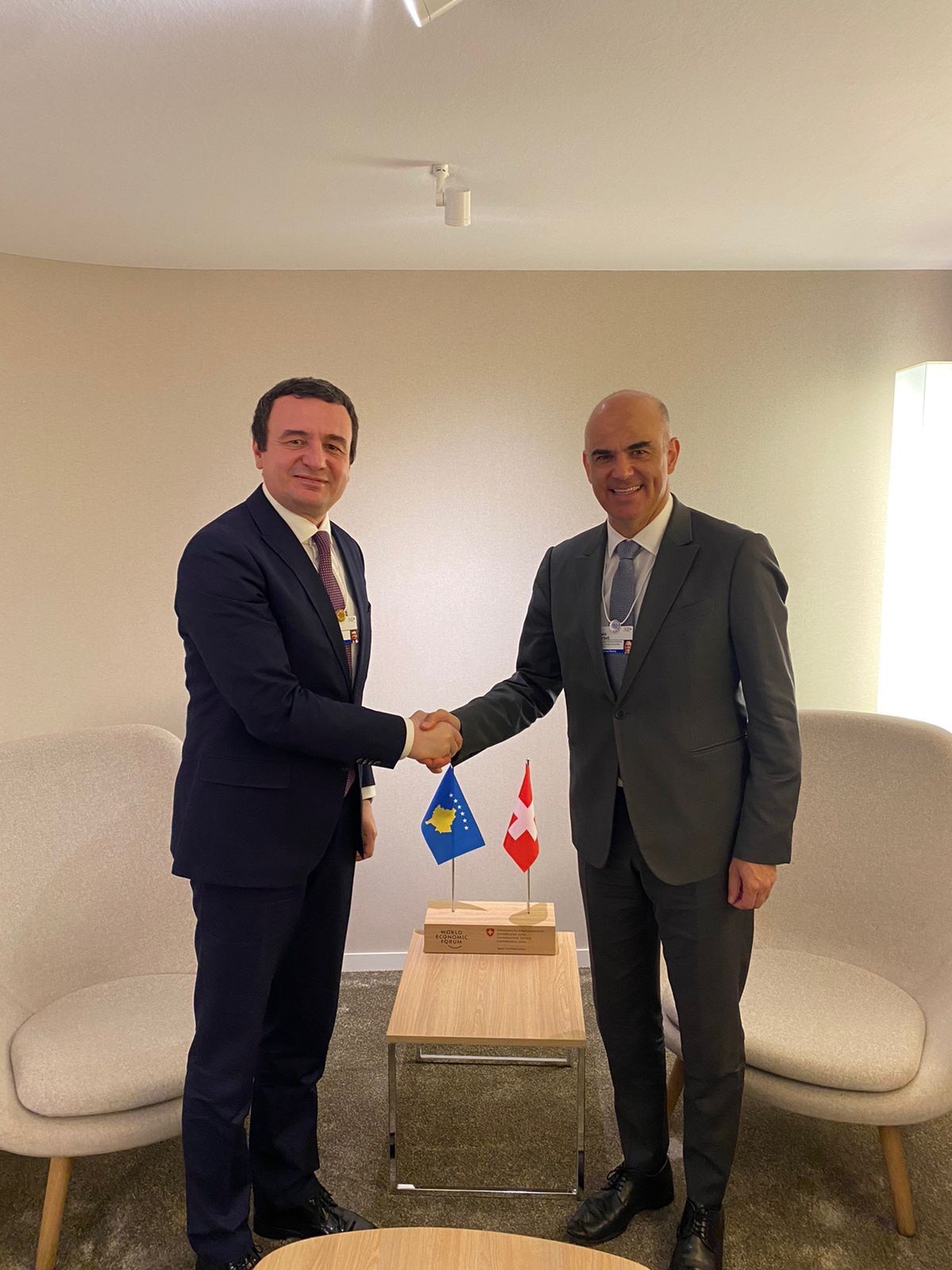 Kryeministri i Republikës së Kosovës, Albin Kurti, takoi zëvendëspresidentin e Zvicrës, Alain Berset, gjatë Forumit Ekonomik Botëror që po zhvillohet në Davos.