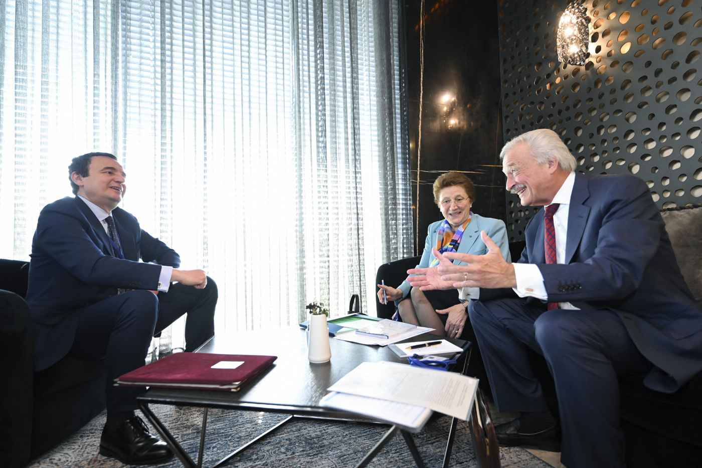 Në margjinat e konferencës Vienna Economic Talks, që po mbahet sot në Prishtinë nën patronatin e Kryeministrit Kurti dhe në bashkëpunim me Forumin Ekonomik të Vjenës, Kryeministri i Republikës së Kosovës, Albin Kurti takoi Presidentin e këtij Forumi, ambasadorin Victor Jackovich si dhe anëtaren e Bordit dhe sekretaren e përgjithshme të Forumit Ekonomik të Vjenës, ambasadoren Elen Kirtcheva.