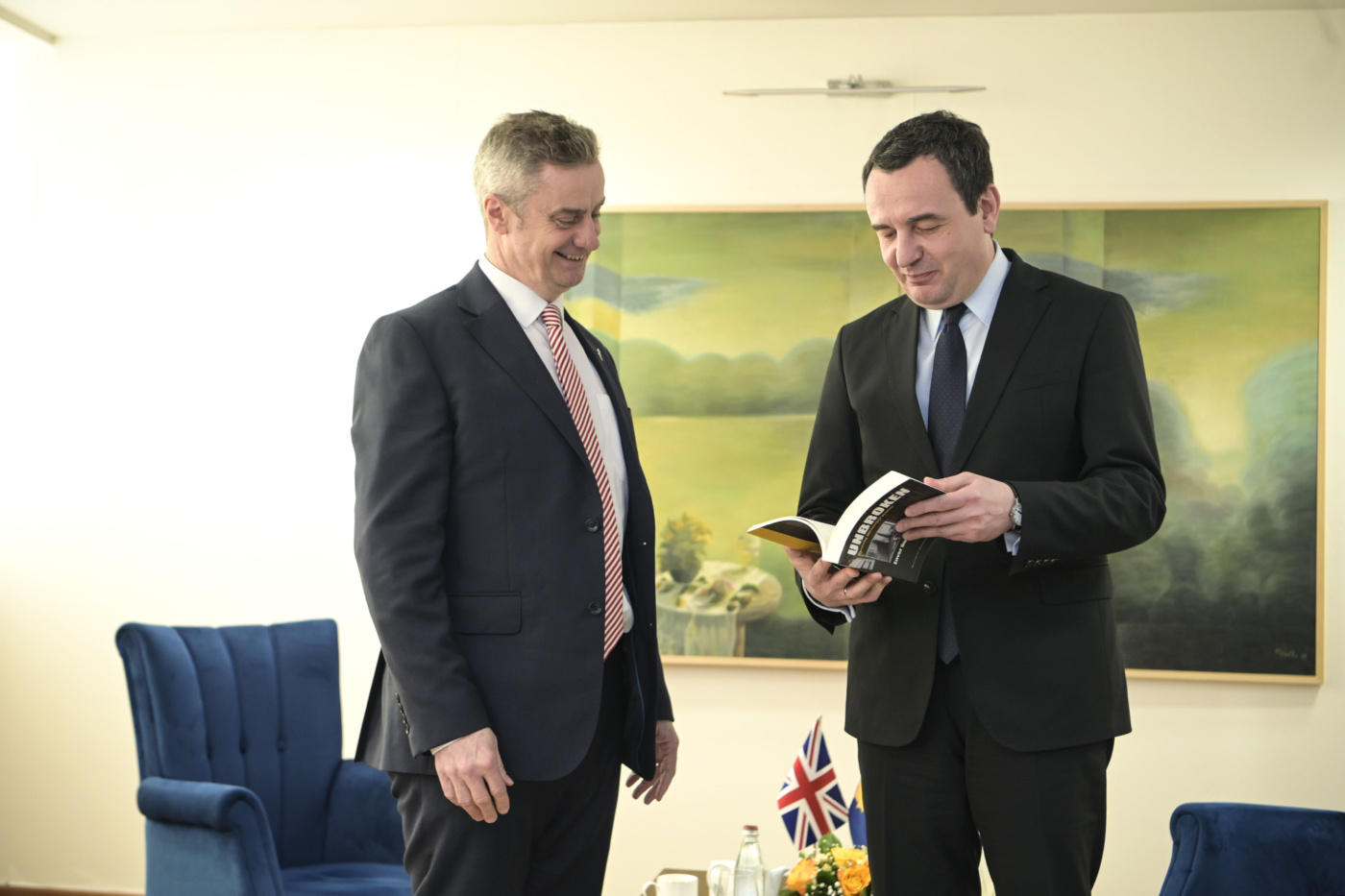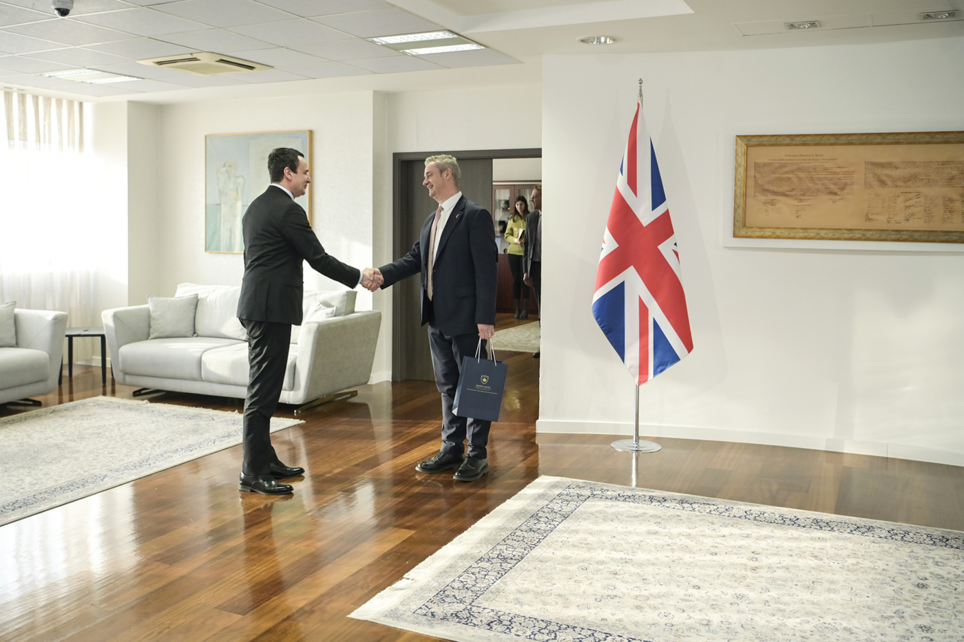 Kryeministri i vendit, Albin Kurti, priti në takimin e parë zyrtar pas dorëzimit të kredencialeve, Ambasadorin e ri të Mbretërisë së Bashkuar, Jonathan Hargreaves.