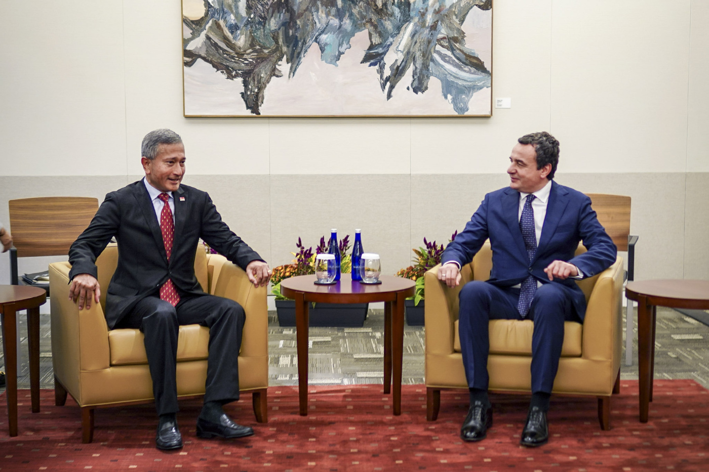 Për raportet bilaterale, potencialin e tyre dhe programet e bashkëpunimit ndërmjet Kosovës dhe Singaporit, Kryeministri i Republikës së Kosovës, Albin Kurti, në New York pati një takim dypalësh me Ministrin e Punëve të Jashtme të Singaporit, Vivian Balakrishnan.