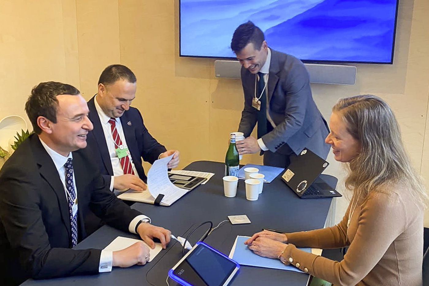 Takimet në ditën e tretë në Forumin Ekonomik Botëror, Kryeministri i Republikës së Kosovës, Albin Kurti i vazhdoi me Monika Bickert, Zëvendëspresidenten për Politika të Përmbajtjes në Meta, kompaninë amë të Facebook, Instagram dhe WhatsApp.