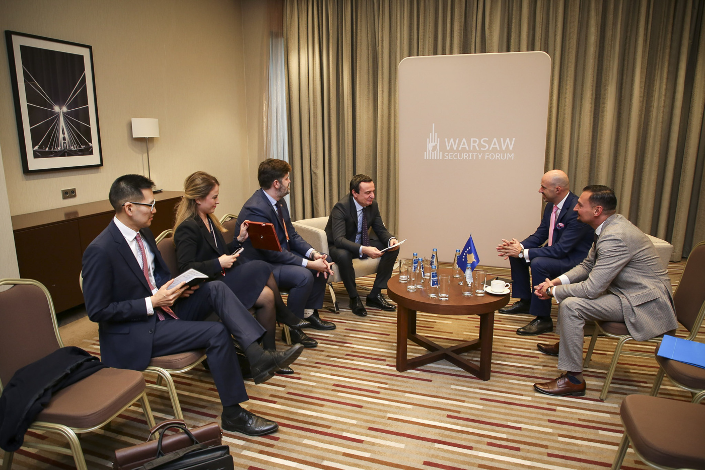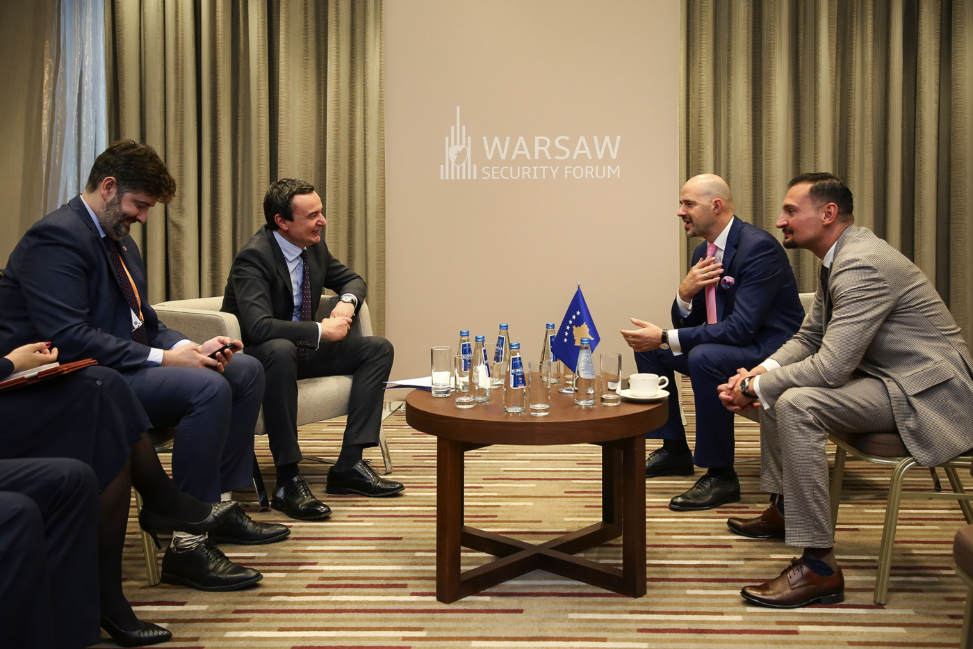 Zyra e Kryeminoistrit njofton se Kurti e falënderoi Pisarski për ftesën për pjesëmarrje në këtë edicion të Forumit të Sigurisë të Varshavës, duke vlerësuar diskutimet e zhvilluara në kuadër të sesioneve e paneleve, takimet e frytshme bilaterale dhe shkëmbimet mbi temat që prekin sigurinë rajonale e evropiane.