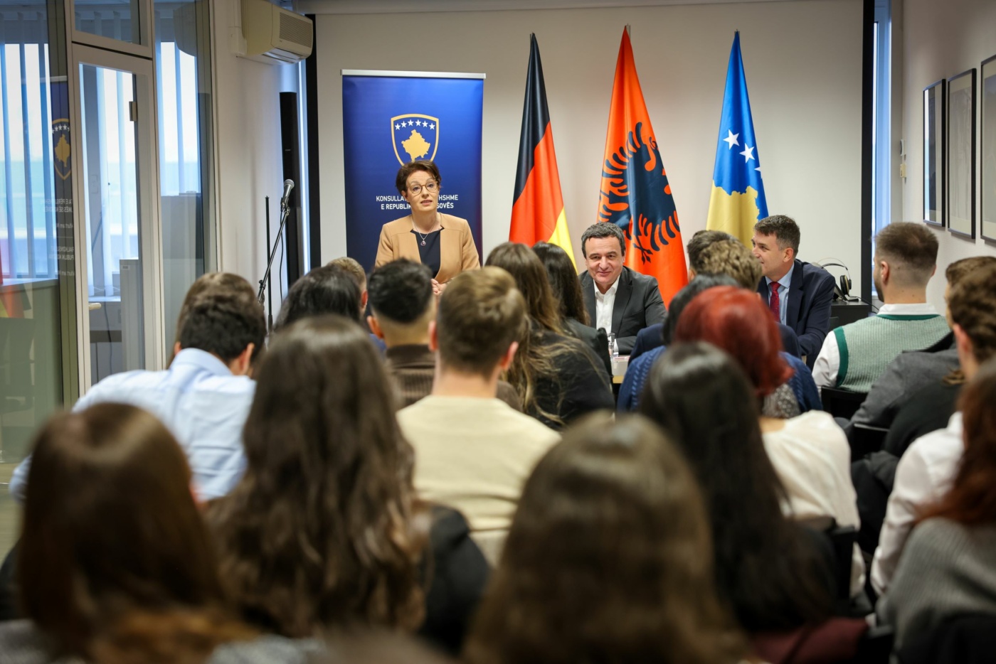 Bashkë edhe me zëvendëskryeministren dhe ministren e Punëve të Jashtme dhe Diasporës, Donika Gërvalla Schwarz, kryeministri Kurti diskutoi me pjesëmarrësit mbi progresin dhe zhvillimin e vendit dhe politikat e ndërmarra nga qeveria jonë për të rinjtë dhe studentët, shkruan Arbresh.info.