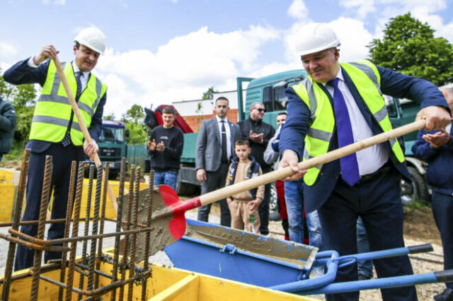 Në ceremoninë e vënies së gurthemelit të shkollës së re, ku të pranishëm ishin edhe deputetë të kuvendit, drejtorë të komunës, asamblistë, mësimdhënës, nxënës, e banorë të