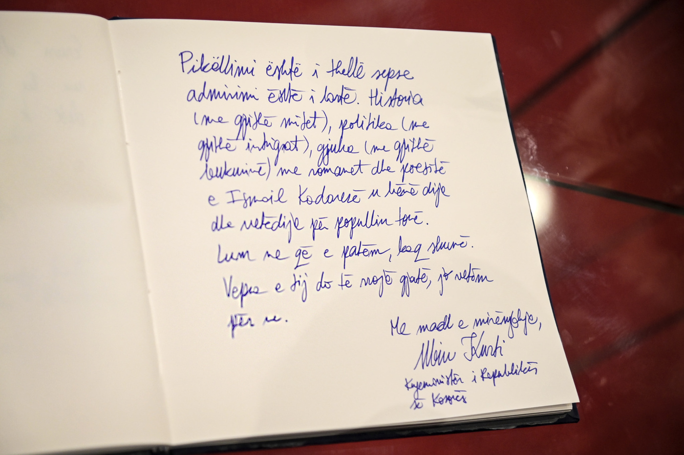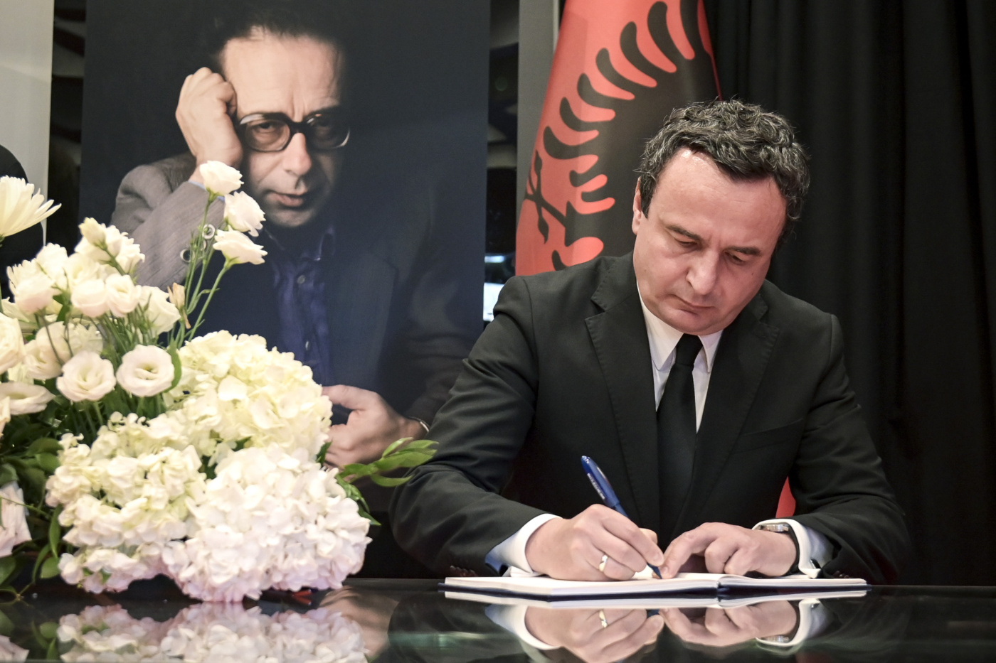 Kryeministri i Kosovës, Albin Kurti, bëri sot homazhe dhe vendosi kurorë me lule te arkivoli i të ndjerit, Ismail Kadare, në ceremoninë shtetërore të Lamtumirës që u mbajt në Teatrin Kombëtar të Operas, Baletit dhe Ansamblit Popullor në Tiranë.