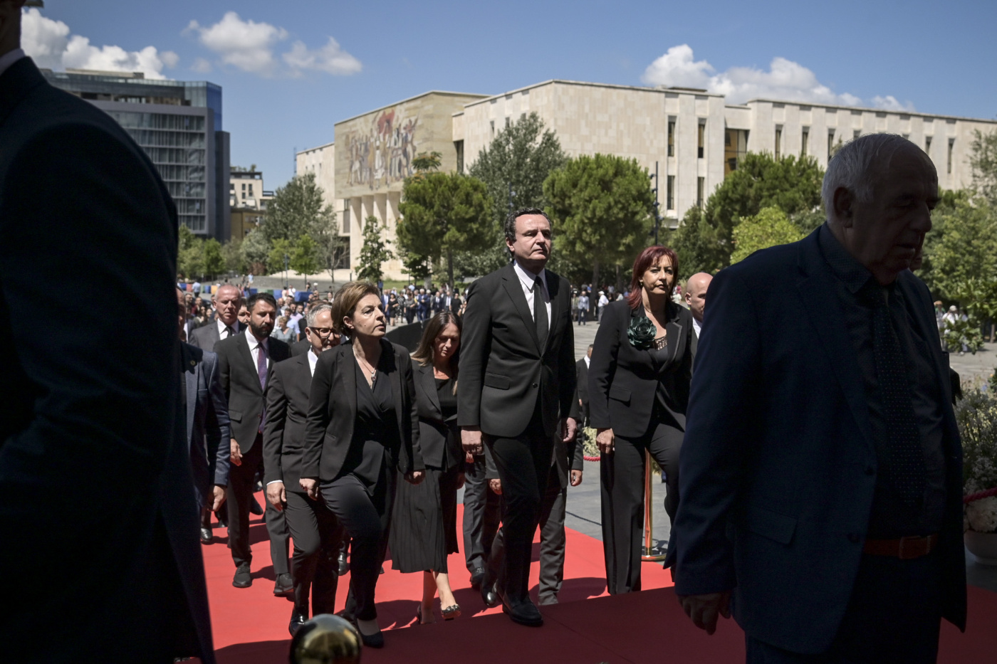 Ai ishte i shoqëruar nga zëvendëskryeministrja, njëherësh ministrja e Punëve të Jashtme dhe Diasporës, Donika Gërvalla-Schwarz dhe zëvendëskryeministrja, Emilija Rexhepi, bashkë me ministra dhe zëvendësministra të kabinetit qeveritar.