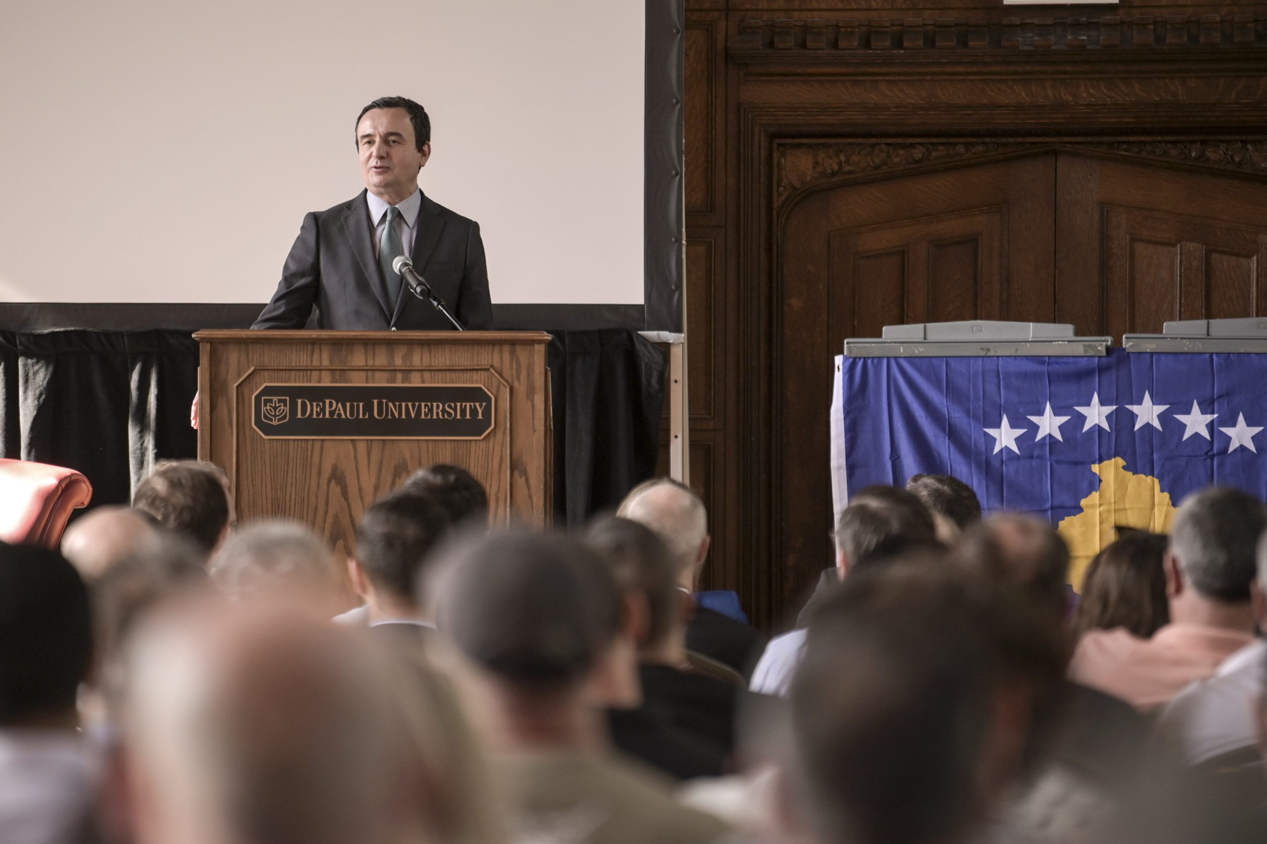 Gjatë qëndrimit në Chicago, të shtetit Illinois të Shteteve të Bashkuara të Amerikës, me ftesë të Katedrës së Albanologjisë “Hidai Eddie Bregu”, Kryeministri i Republikës së Kosovës, Albin Kurti vizitoi Universitetin DePaul, ku mbajti edhe një ligjëratë të hapur.