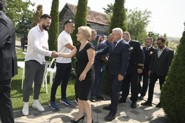 Pas homazhe, ai së bashku me anëtarët e kabinetit qeveritar dhe Drejtori i Policisë u mirëpritën nga familja Bunjaku në shtëpinë e tyre.