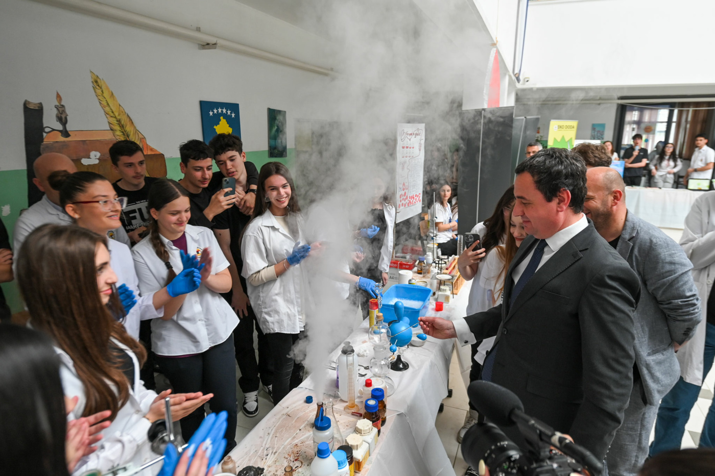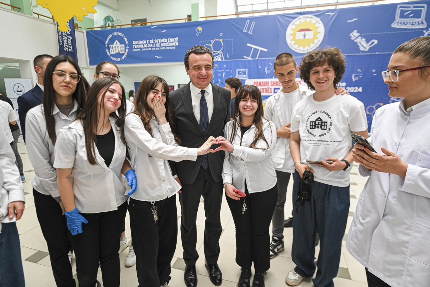 I mirëpritur nga Drejtori i Shkollës, Bardhyl Kabashi dhe stafi i tij, kryeministri Kurti, shprehu mirënjohjen për punën dhe kontributin e tyre të vazhdueshëm në arsimimin dhe edukimin brezave të rinj, teksa i uroi për organizimin e Panairit. Ndërkaq, nxënësit i përgëzoi për idetë, projektet dhe punimet e tyre, duke i inkurajuar ata që të vazhdojnë interesimin për shkencën, kulturën e teknologjinë dhe të ushqejnë në vazhdimësi kuriozitetin prej shkencëtari.