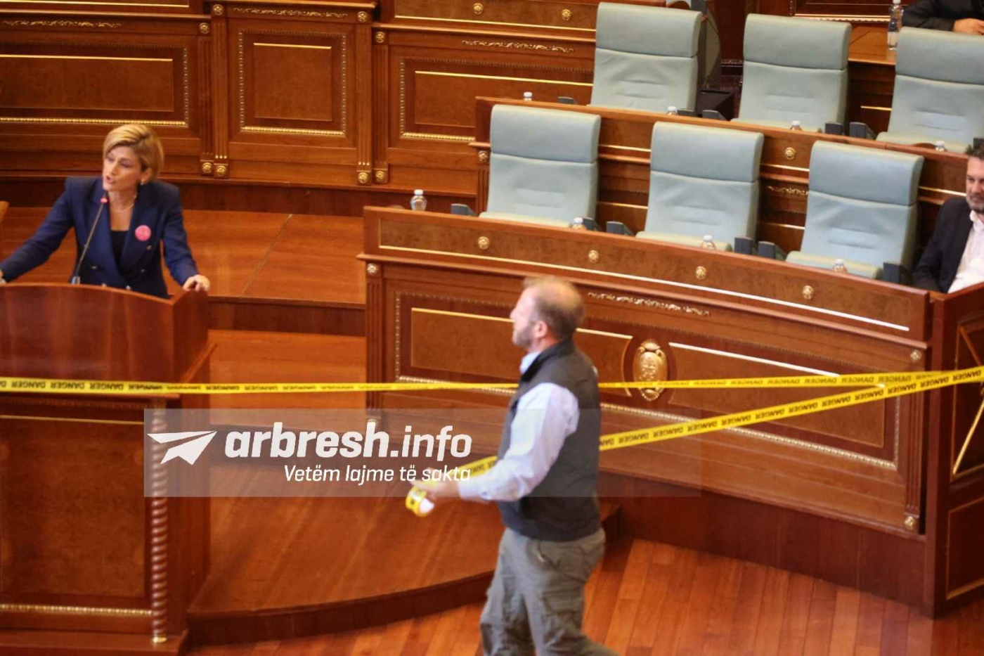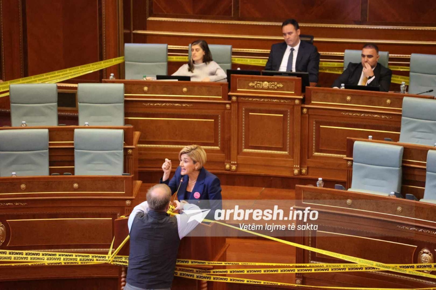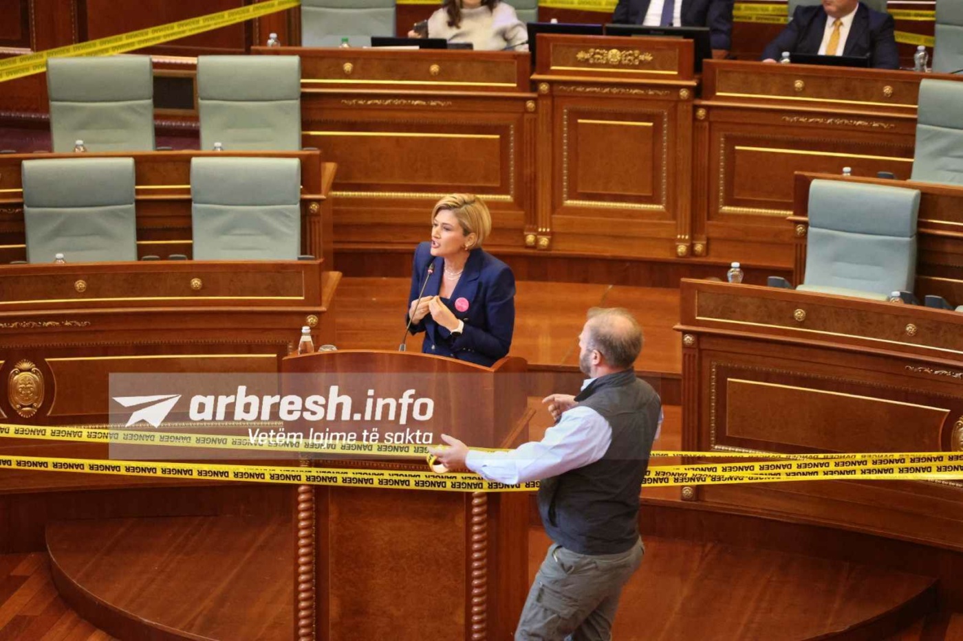 Ai ka rrethuar gjithë foltoren me shirin e ndalesës ndërsa Kusari-Lila argumentonte përgjimet kurse deputetët bënin zhurmë dhe kundërshtonin fjalimin./Arbresh.info