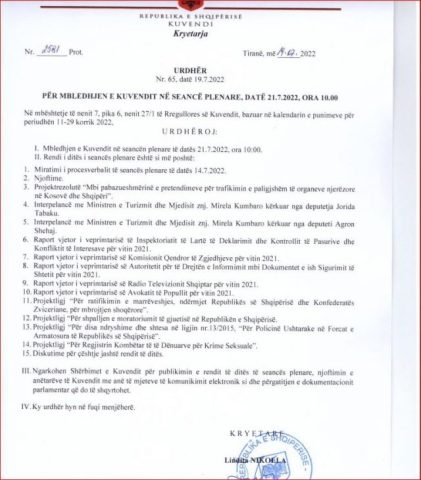 Kuvendi i Shqipërisë sot pritet ta votojë një “Rezolutë mbi pabazueshmërinë e pretendimeve për trafikimin e e paligjshëm të organeve njerëzore në Kosovë dhe Shqipëri”.