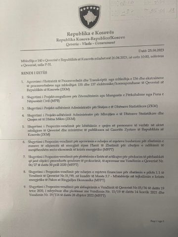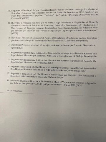 Qeveria e Kosovës sot do të mbajë mbledhjen e radhës ku pritet të shqyrtohen 19 pika të rendit të ditës.