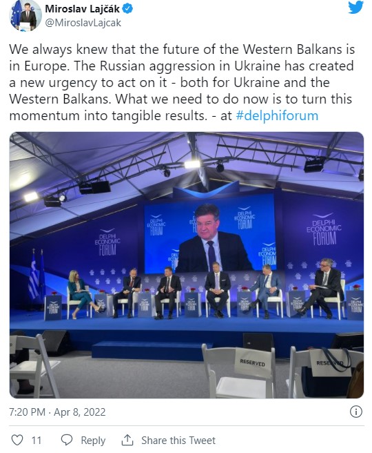 Nga Forumi Ekonomik Delphi në Greqi, Lajçak ka thënë se “gjithmonë e kemi ditur që e ardhmja e Ballkanit Perëndimor është Evropa”.