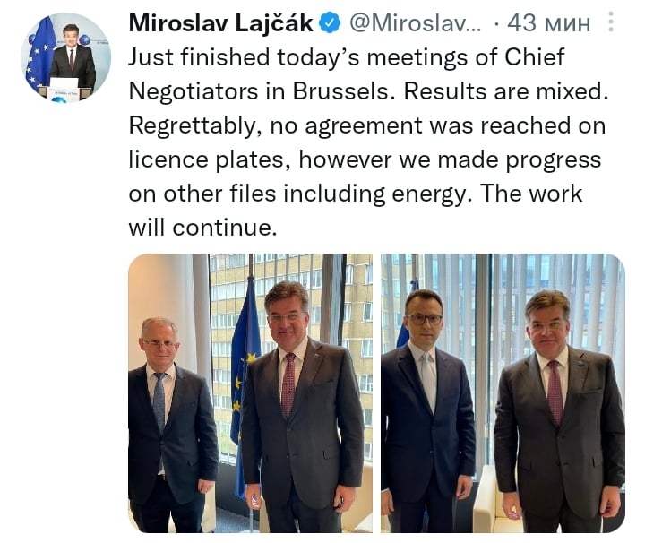 I dërguari i posaçëm i Bashkimit Evropian për dialog, Mirosllav Lajçak ka njoftuar se sapo përfunduan takimet e sotme të kryenegociatorëve në Bruksel dhe rezultatet janë të përziera.