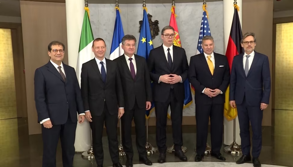 Veç Lajçakut, në takim me Vuçiqin, morën pjesë edhe emisari amerikan për Ballkanin Perëndimor, Gabriel Escobar, i dërguari i posaçëm i Francës, Emmanuel Bonne, ai i Gjermanisë, Jens Plotner, dhe Francesco Talon, këshilltar i kryeministres së Italisë.
