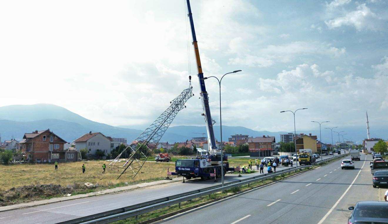 Pas shumë përpjekjesh, po largohet shtylla e largpërçuesit në Transit të Ri në Prizren, që për vite ka penguar lëvizjen normale të automjeteve në këtë zonë.
