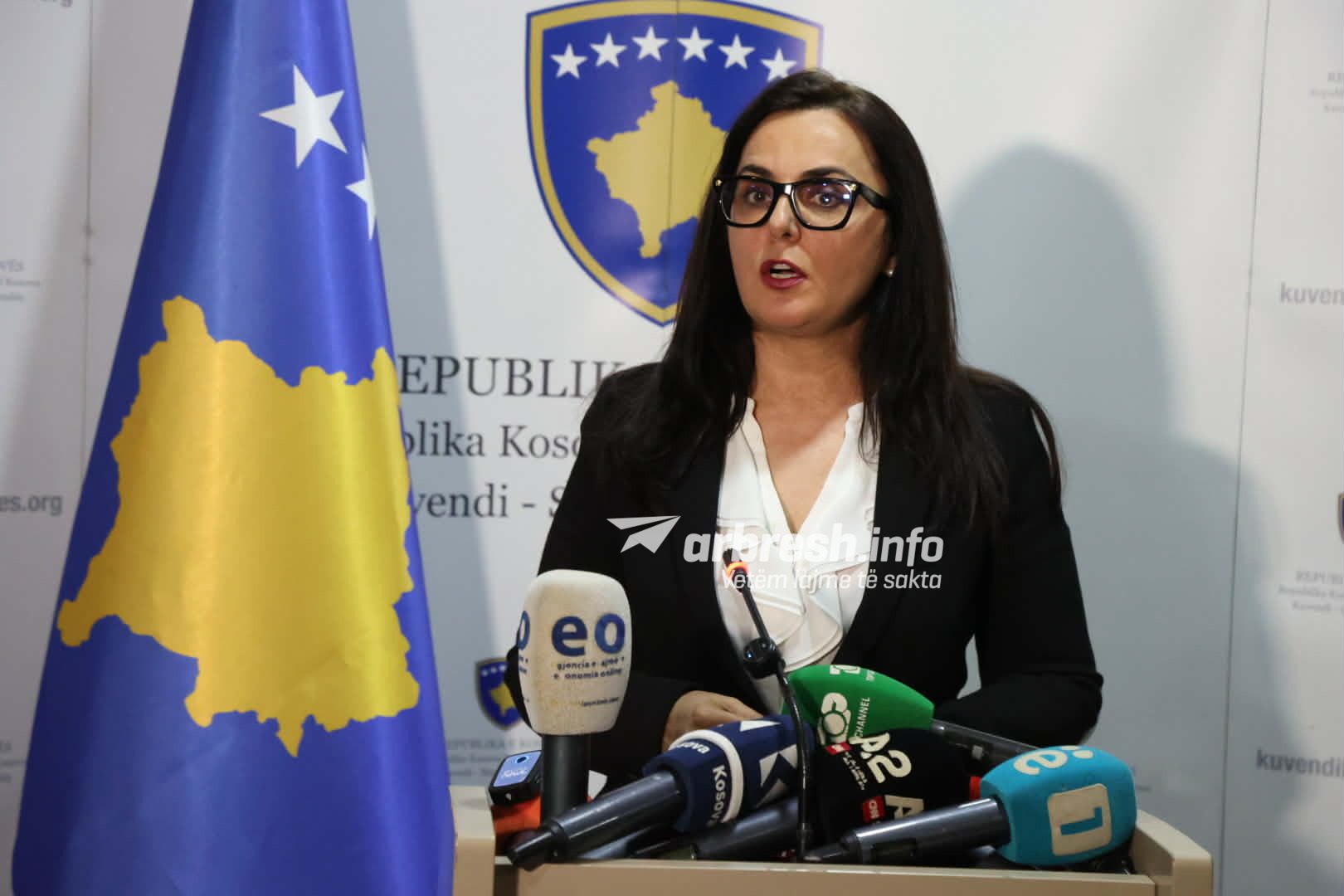 Shefja e Grupit Parlamentar të LDK-së, Jehona Lushaku – Sadriu, në një konferencë për media është duke e deklaruar për çështjen e presidentit.