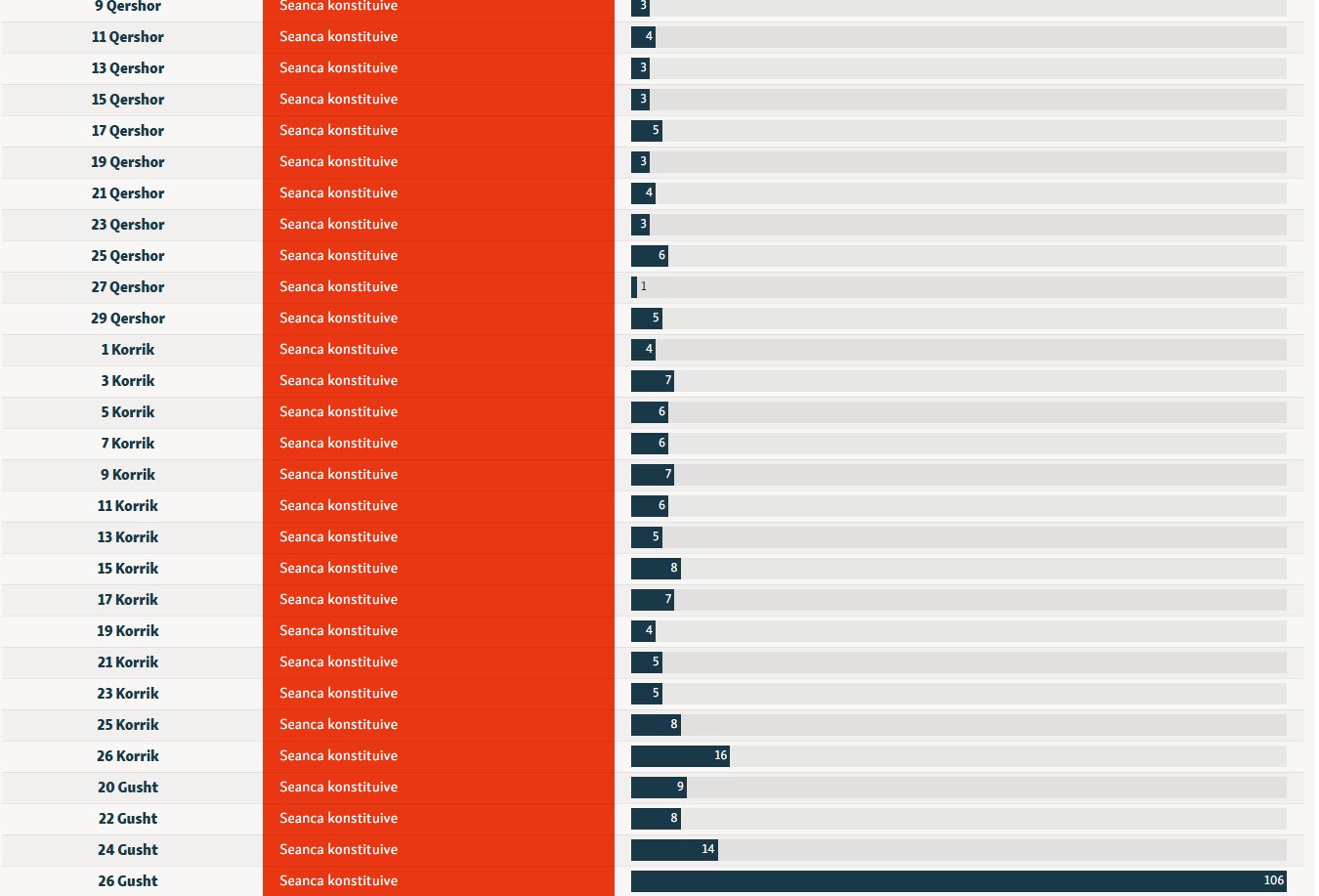 Madje, iu deshën 60 seanca për ta konstituuar Kuvendin.
