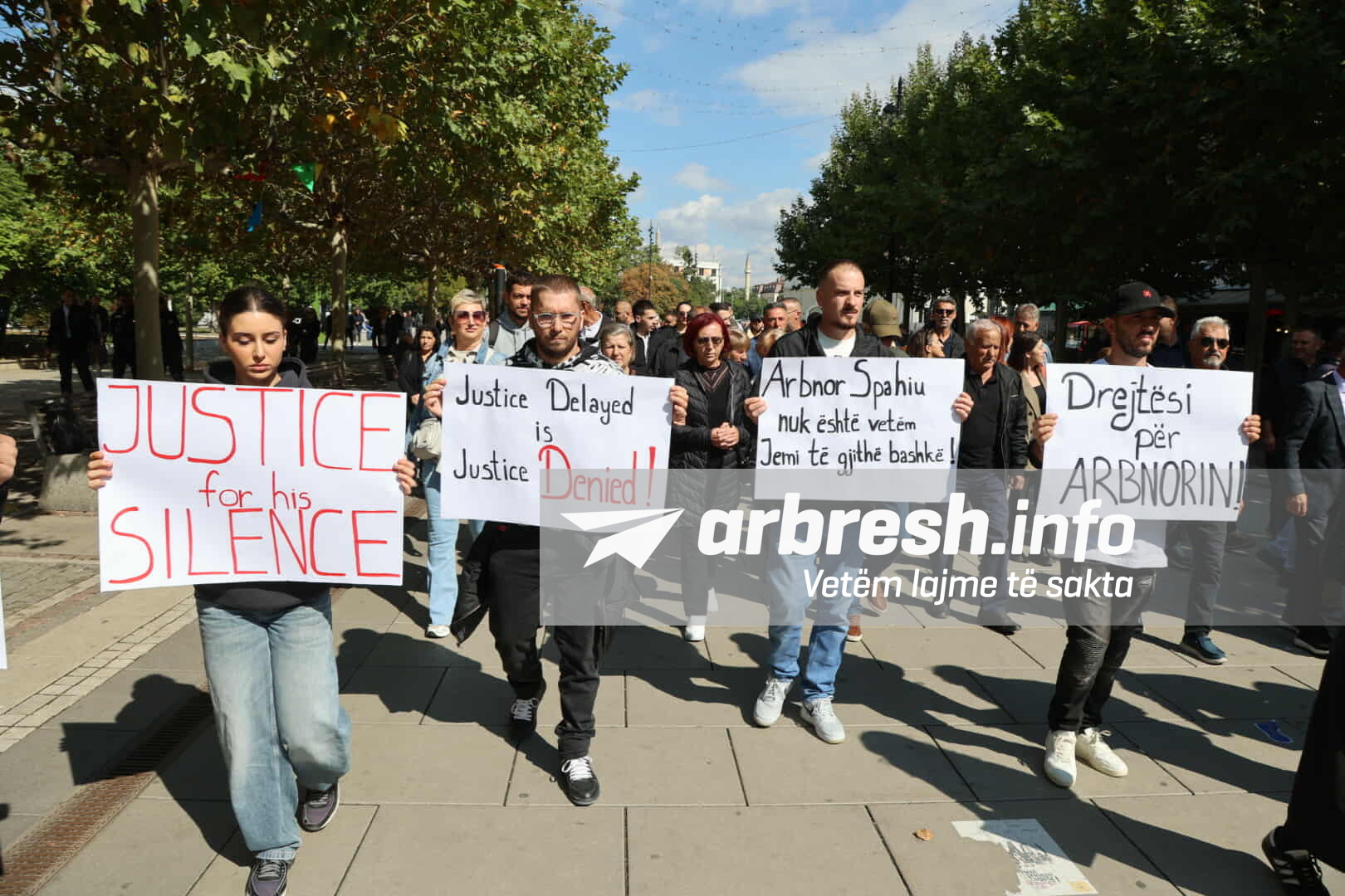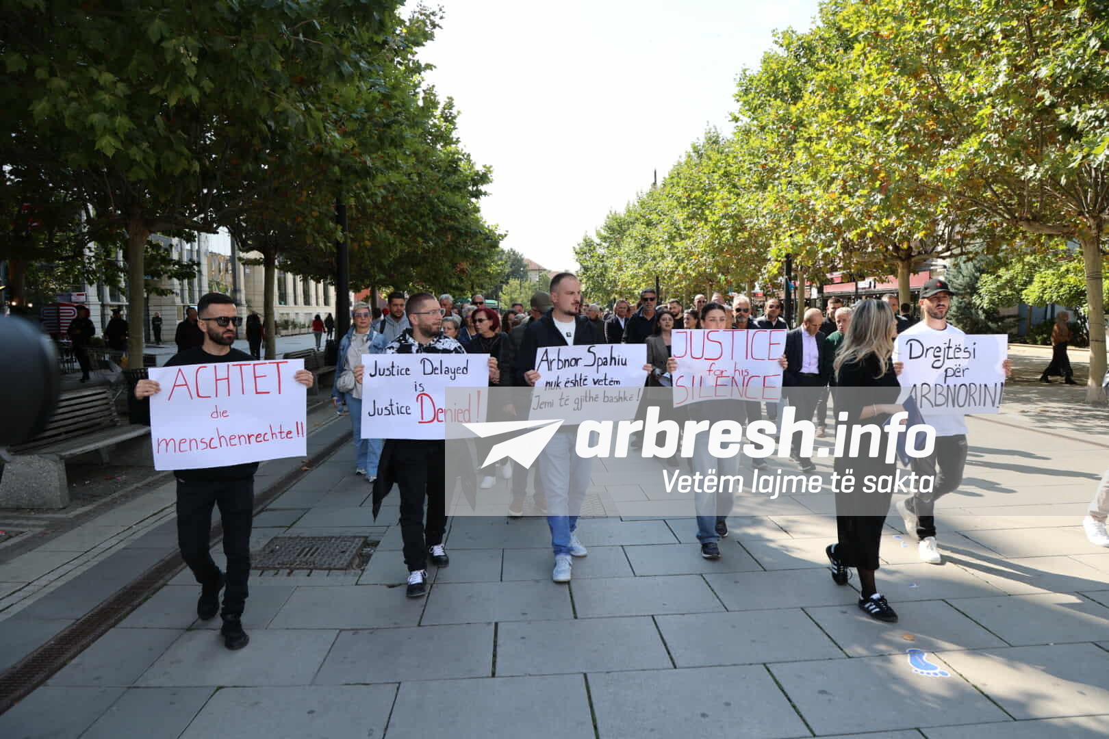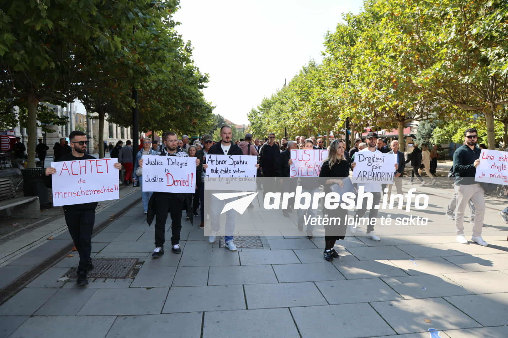 Familja Spahiu ka organizuar këtë protestë, duke kërkuar nga institucionet vendore dhe ndërkombëtare që të ngrisin zërin kundër, siç u tha, padrejtësisë ndaj Spahiut.