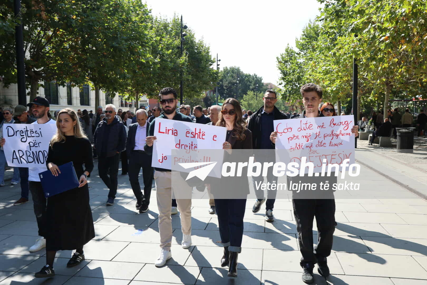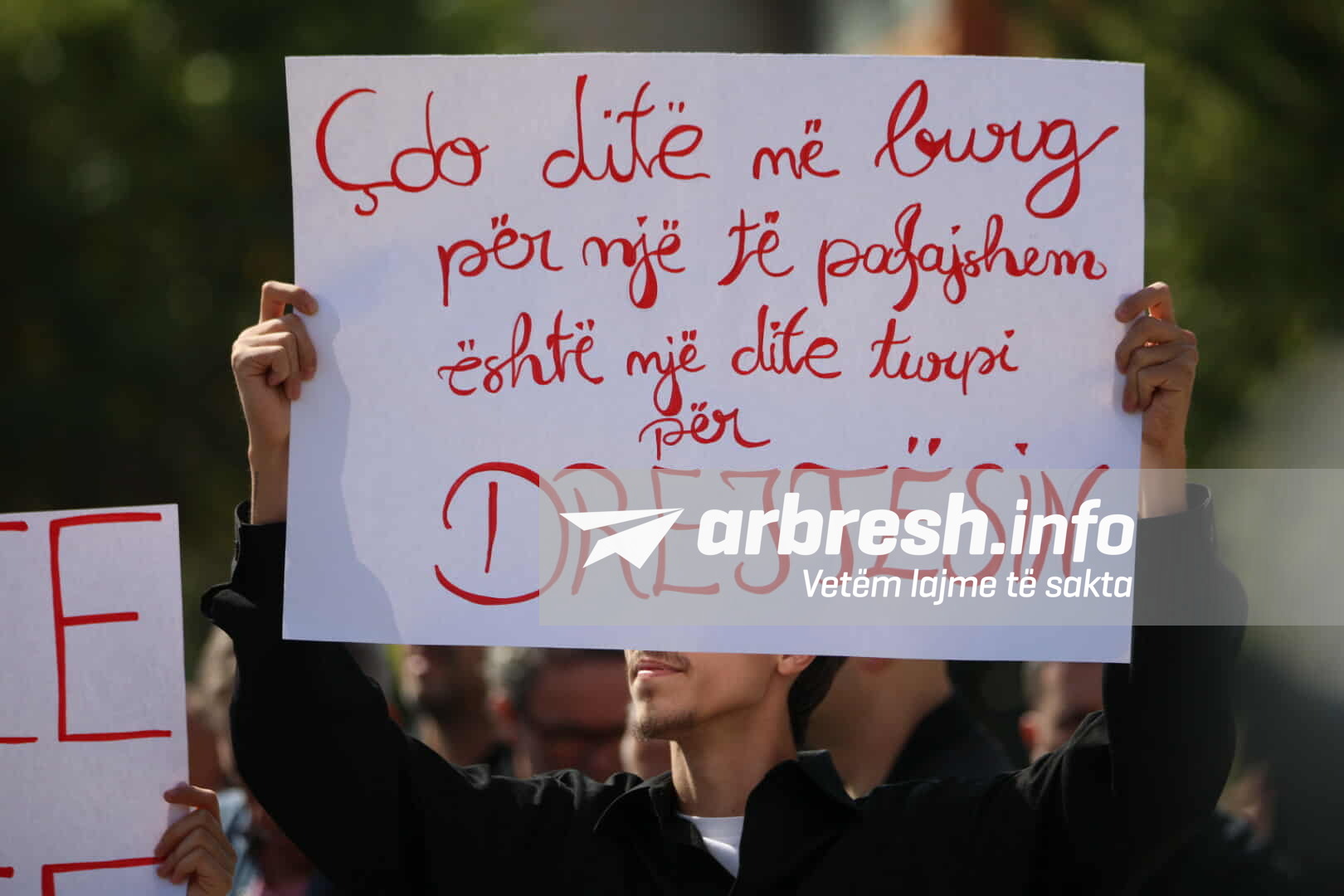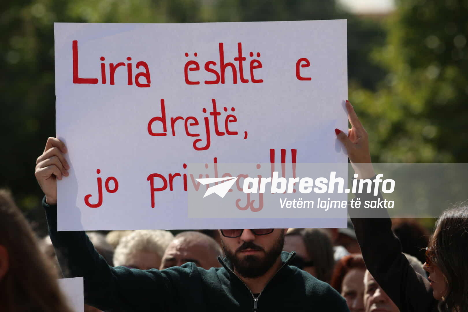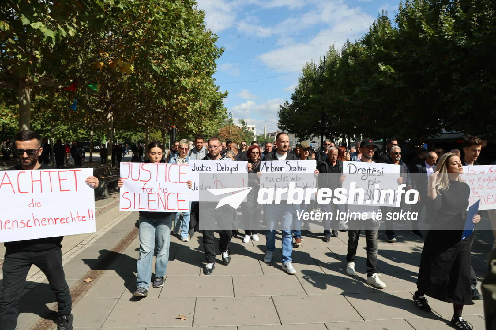 Qytetarët e mbledhur në protestë mbanin pankarta me mbishkrime: “Liria është e drejtë, jo privilegj”, “Drejtësi për Arbnorin”, dhe