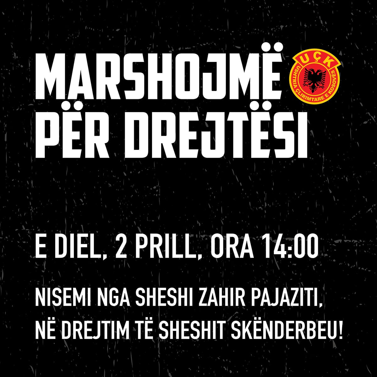 Të dielën, më 2 prill, në Prishtinë, platforma “Liria ka emër”, organizon Marsh qytetar dhe solidarizues në mbështetje të luftës së drejt të UÇK-së dhe ish-krerëve të saj, Hashim Thaçi, Kadri Veseli, Jakup Krasniqi, Rexhep Selimi dhe bashkëluftëtarët e tyre në Hagë.
