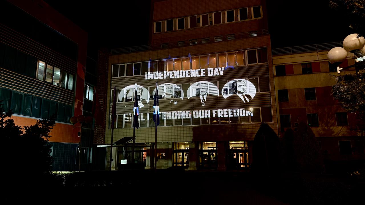 Në shënim të 18-vjetorit të Pavarësisë së Kosovës, platforma qytetare “Liria Ka Emër” ka realizuar një aktivitet simbolik në kryeqytet, duke projektuar në objektin e Presidencës së Kosovës imazhin me sloganin: “Dita e Pavarësisë – Ende duke mbrojtur lirinë tonë”.