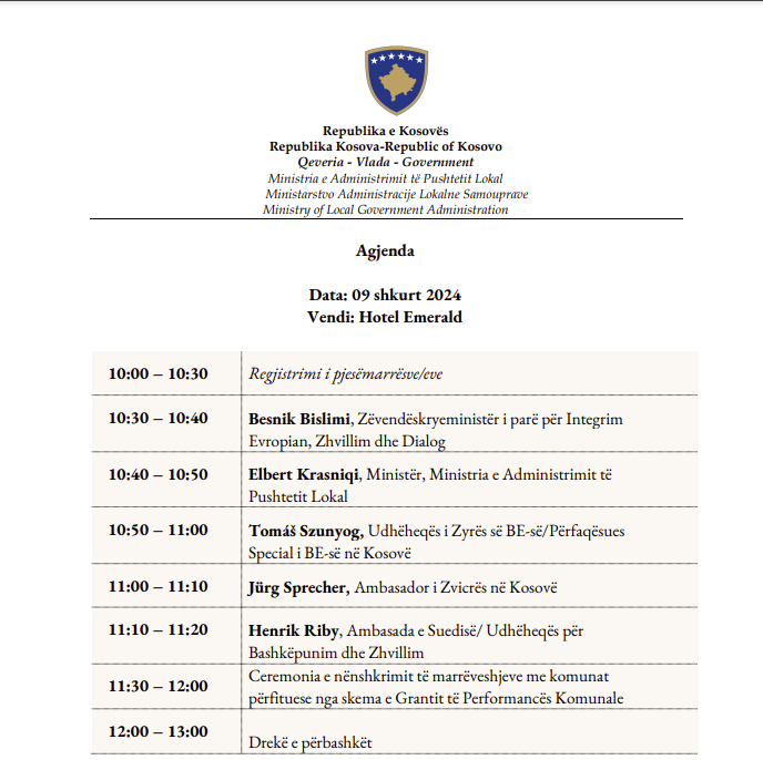 Ministria e Administrimit të Pushtetit Lokal dhe DEMOS, nesër do të mbajnë ceremoninë e Grantit të Performancës Komunale.