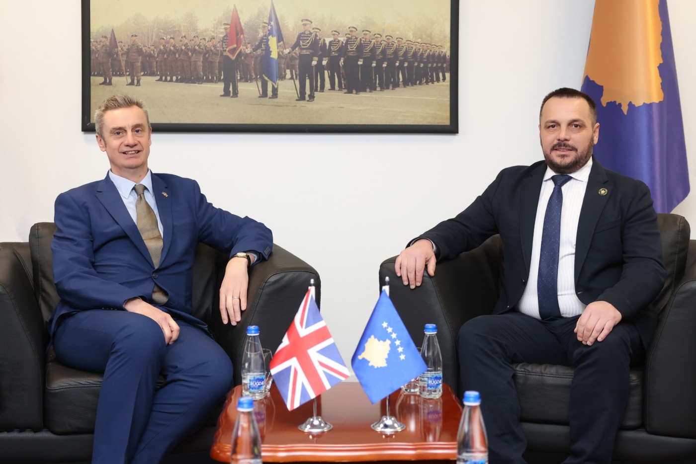 Ministri i Mbrojtjes, Ejup Maqedonci, sot mirëpriti në takim ambasadorin e ri të Mbretërisë së Bashkuar në Kosovë, Jonathan Hargreaves.
