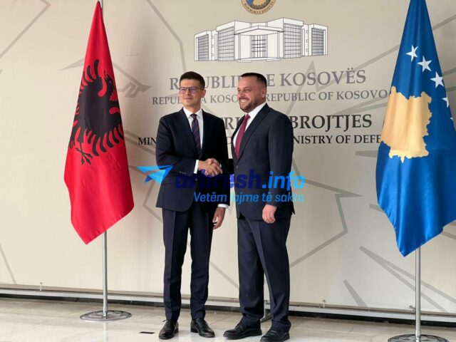 Ministri i Mbrojtjes, Ejup Maqedonci, me ceremoni zyrtare, shoqëruar me togun ceremonial të FSK-së, ka pritur sot homologun e tij nga Shqipëria, Pirro Vengu.