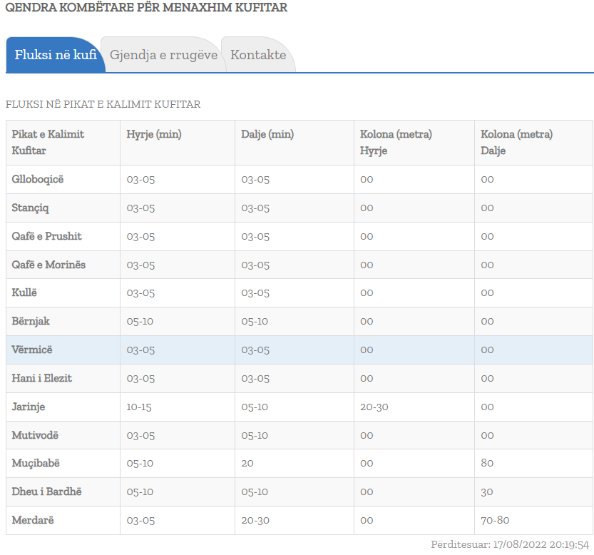 Përjashtim këtu bënë vetëm pika kufitare në Muçibabë ku pritjet janë deri në 20 minuta për të dalë dhe 5-10 për të hyrë në Kosovë./arbresh.info/