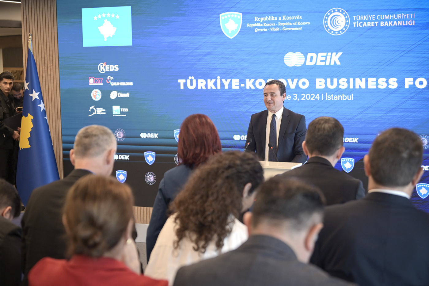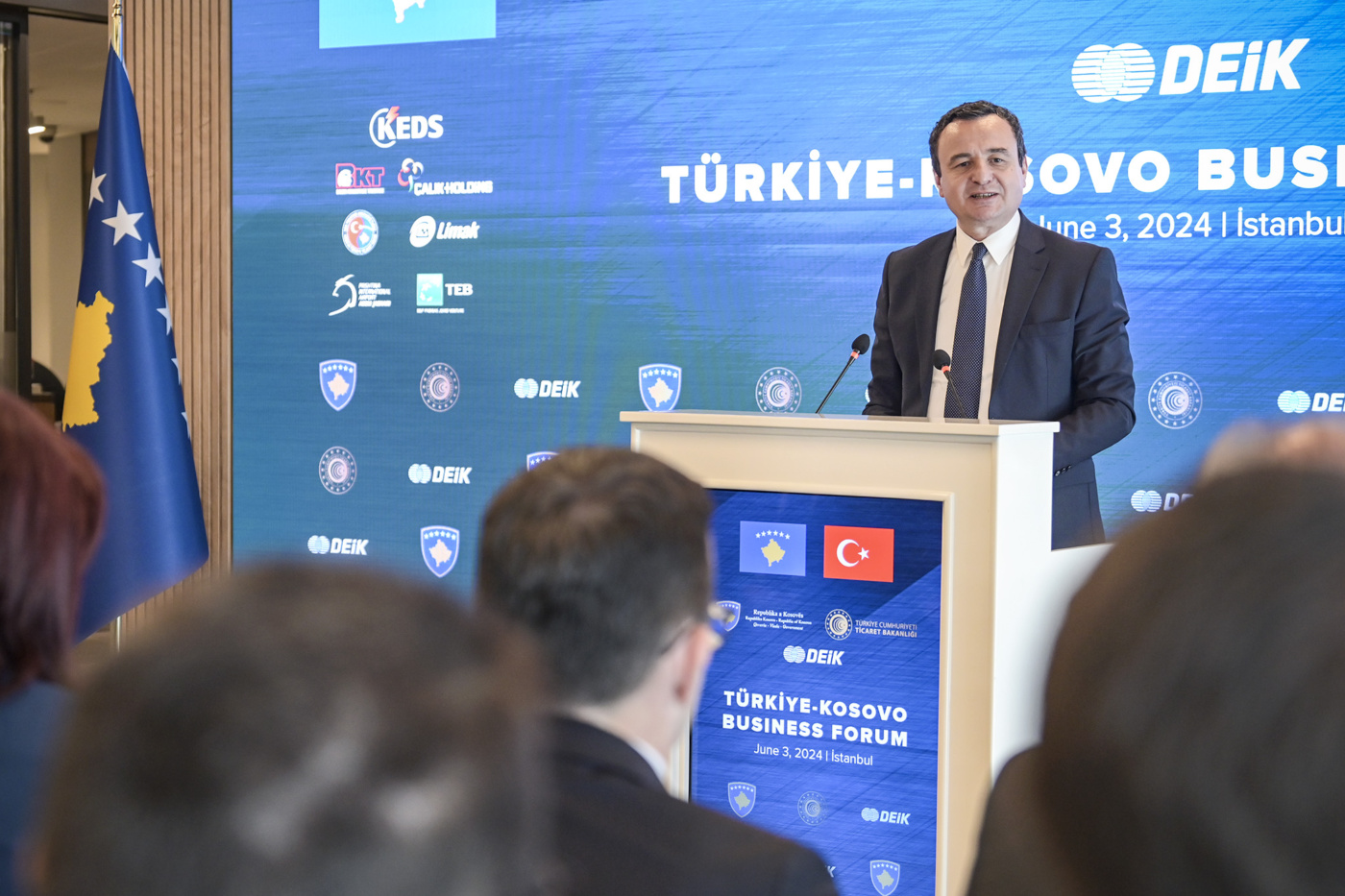 “Kosova krenohet me ekonominë demokratike, të sigurt, të qëndrueshme dhe me treg të hapur, të mbështetur nga partneritetet me Bashkimin Evropian, Shtetet e Bashkuara të Amerikës, Gjermaninë, Britaninë e Madhe, Francën, Italinë dhe shumë vende të tjera anembanë botës. E njohur për përparimet e saj në sundimin e ligjit, të drejtat politike, liritë civile dhe demokracinë zgjedhore, Kosova është njohur si vendi më demokratik në Ballkan. Prandaj, Kosova paraqet një destinacion ideal për bizneset turke që kërkojnë të rindërtojnë njësitë e tyre prodhuese në një vend të orientuar kah vlerave demokratike dhe stabilitetit ekonomik”, përfundoi Kurti.