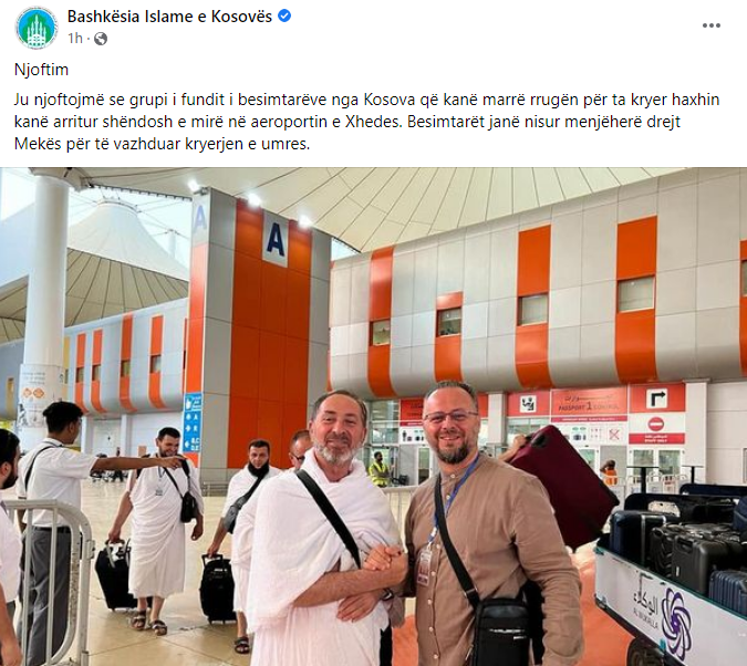 (Ju njoftojmë se grupi i fundit i besimtarëve nga Kosova që kanë marrë rrugën për ta kryer haxhin kanë arritur shëndosh e mirë në aeroportin e Xhedes. Besimtarët janë nisur menjëherë drejt Mekës për të vazhduar kryerjen e umres.)