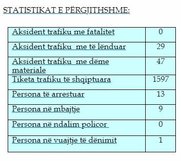 Sipas statistikave të përgjithshme të policisë, gjatë 24 orëve të fundit kanë ndodhur 29 aksidente me të lënduar dhe 47 me dëme materiale.