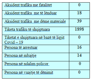 Policia bën të ditur se gjatë 24 orëve të fundit janë evidentuar disa aksidente në trafikun rrugor, 18 aksidente kanë qenë me lëndime e 39 me dëme materiale, shkruan Arbresh.info.
