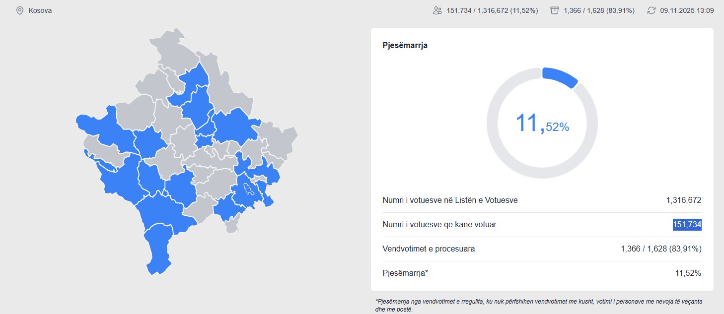 Komunat me daljen më të madhe të qytetarëve në votime deri më tani janë ajo e Mamushës, Junikut, Obiliqit, Kllokotit, Mitrovicës së Jugut e të tjera