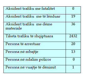 Gjatë kësaj kohe, kanë ndodhur 36 aksidente trafiku me dëme materiale, 19 me të lënduar e asnjë me fatalitet, shkruan Arbresh.info.