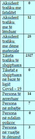 Sipas tyre 12 aksidente kanë ndodhur me të lënduar, ndërsa 28 me dëme materiale.