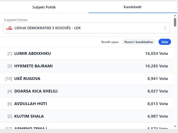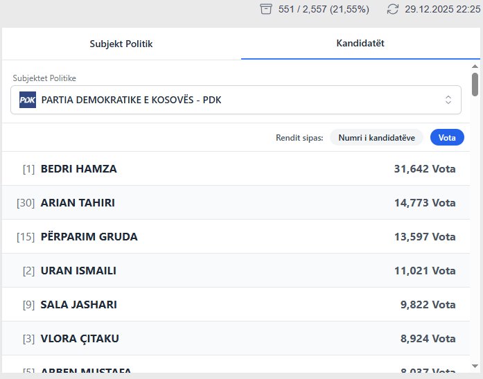 Ndërsa këta janë pesë kandidatët më të votuar nga partitë politike deri më tani