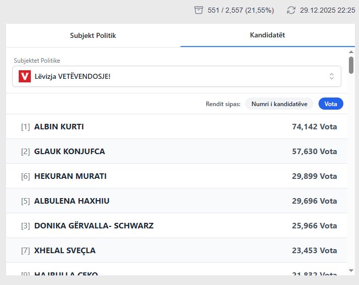 Mbi 20 përqind e votave të kandidatëve për deputetë tashmë janë numëruar.