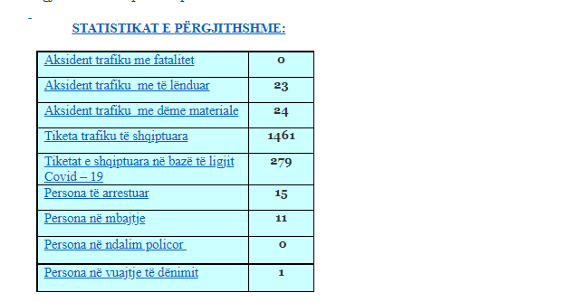 Në të njëjtën kohë, Policia e Kosovës ka shqiptuar 1 mijë e 461 tiketa për të gjithë shkelësit e rregullave në trafik./arbresh.info/